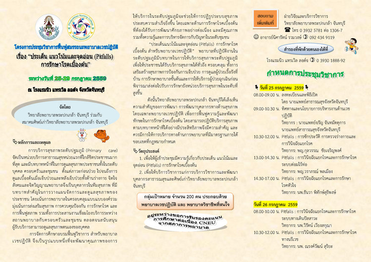 ประชุมฟื้นฟูวิชาการ พยาบาลเวชปฏิบัติฯ 25-29 กค 59 - Update!!