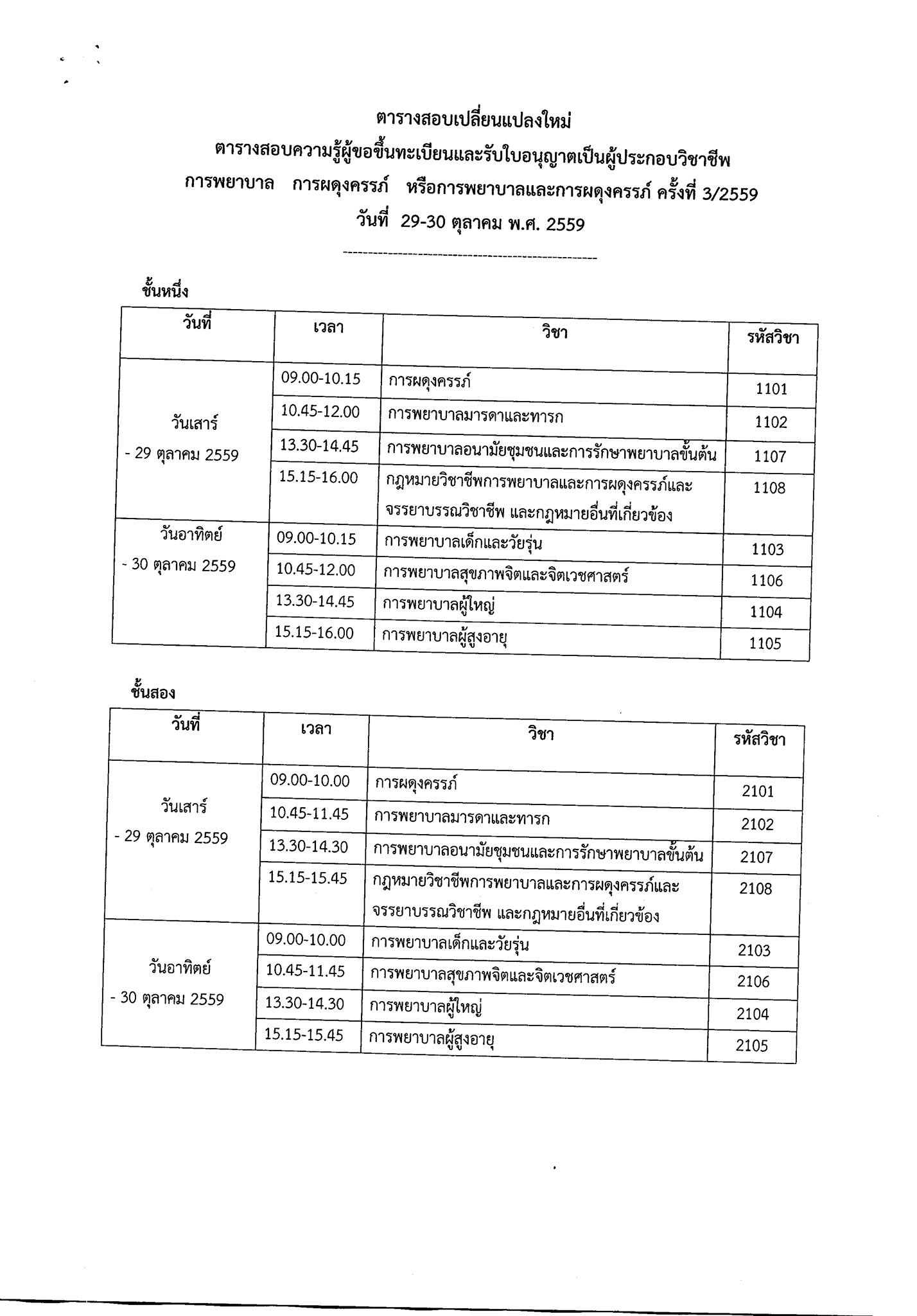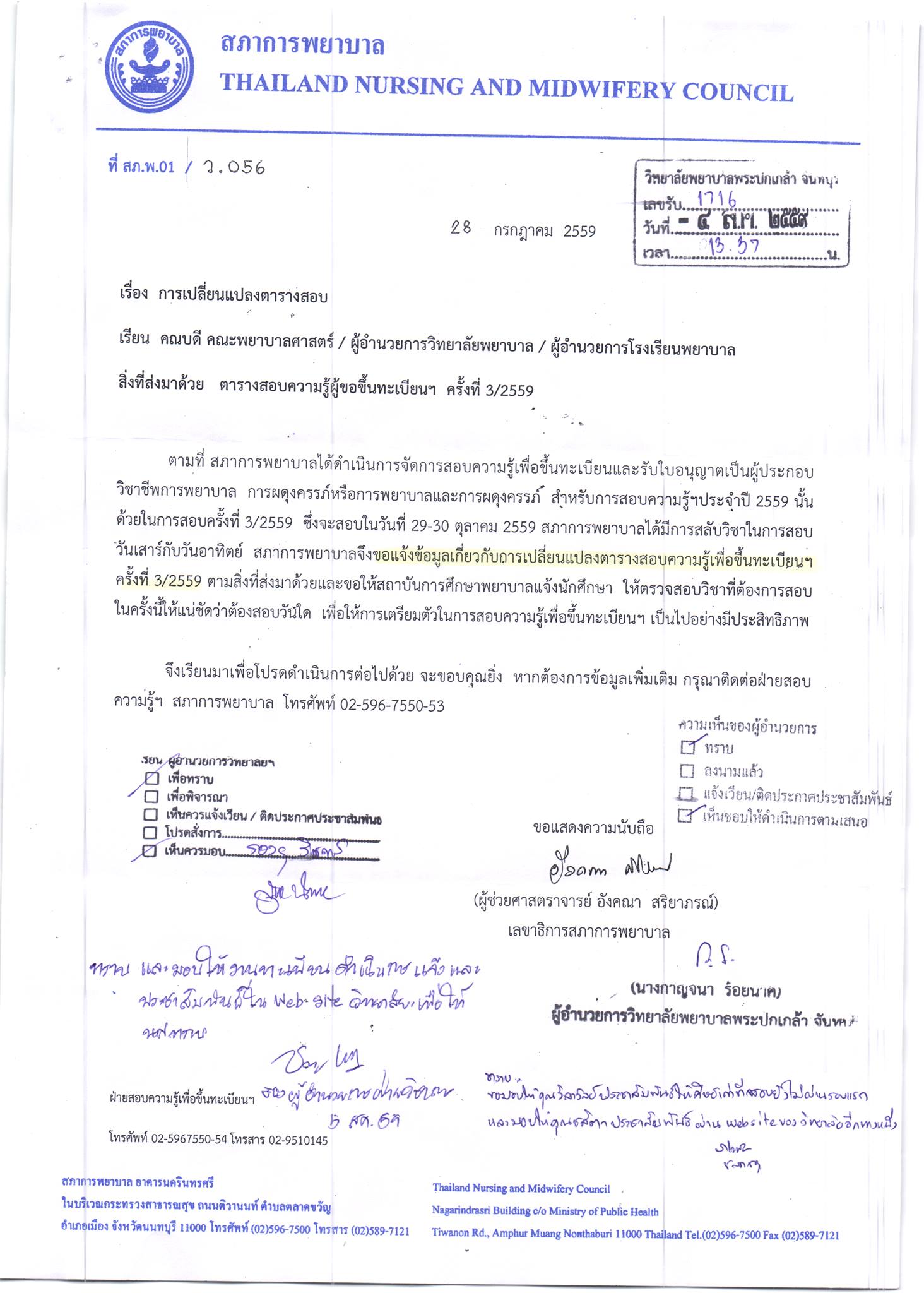 ประกาศเปลี่ยนแปลงตารางสอบสภาการพยาบาล