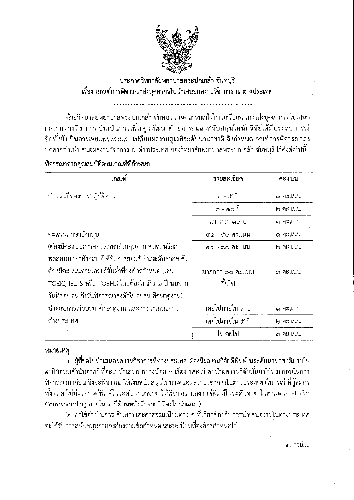 เกณฑ์การพิจารณาส่งบุคลากรไปนำเสนอผลงานวิชาการ ณ ต่างประเทศ